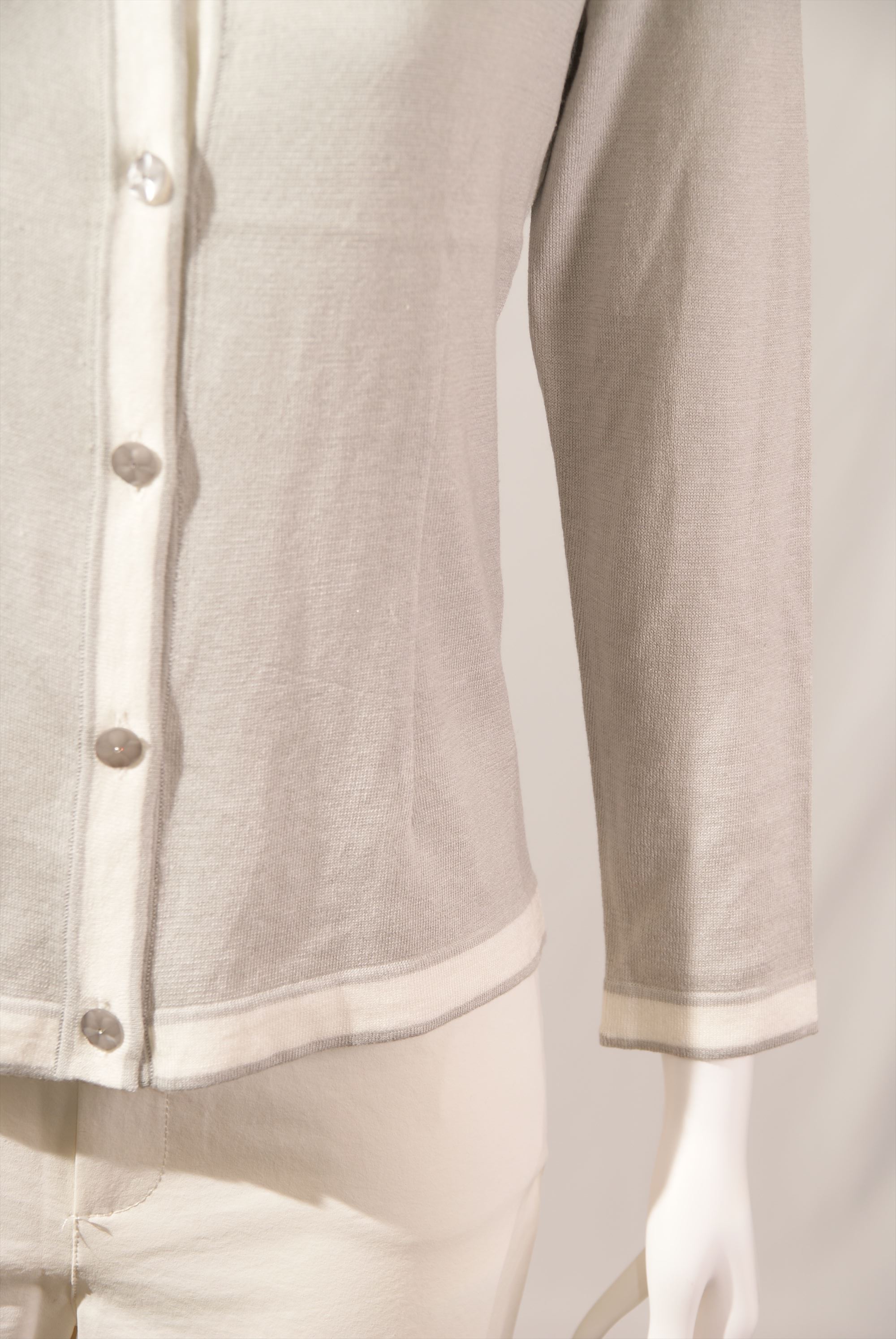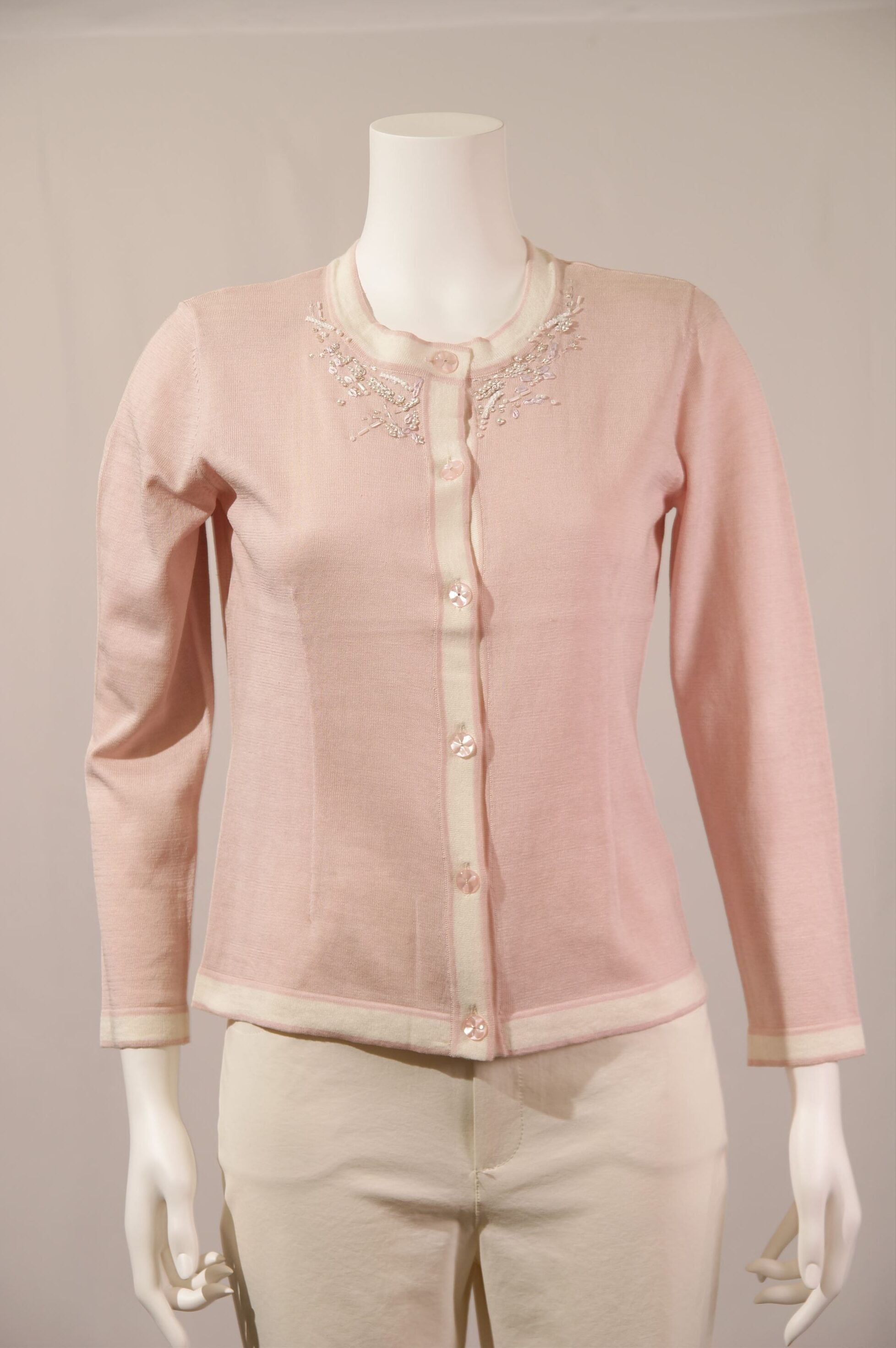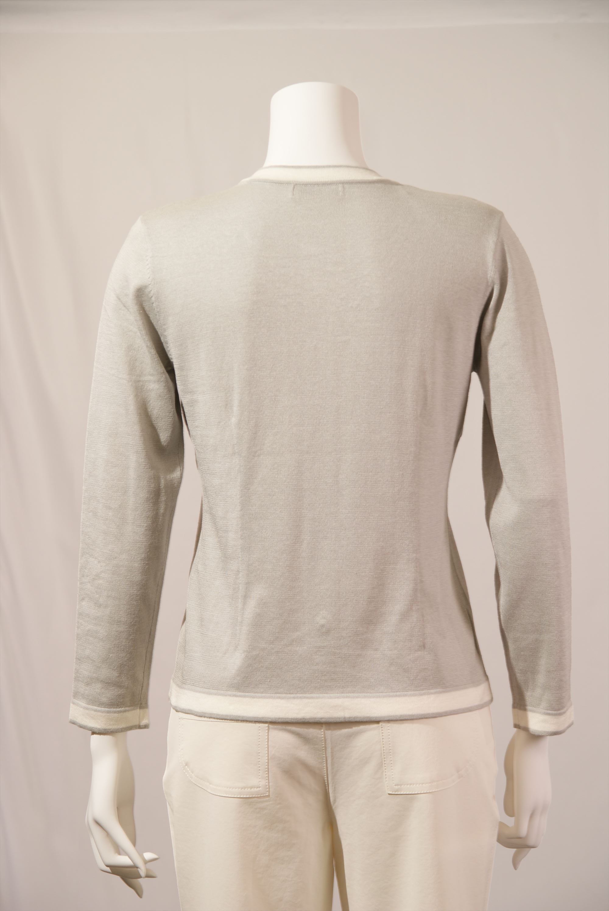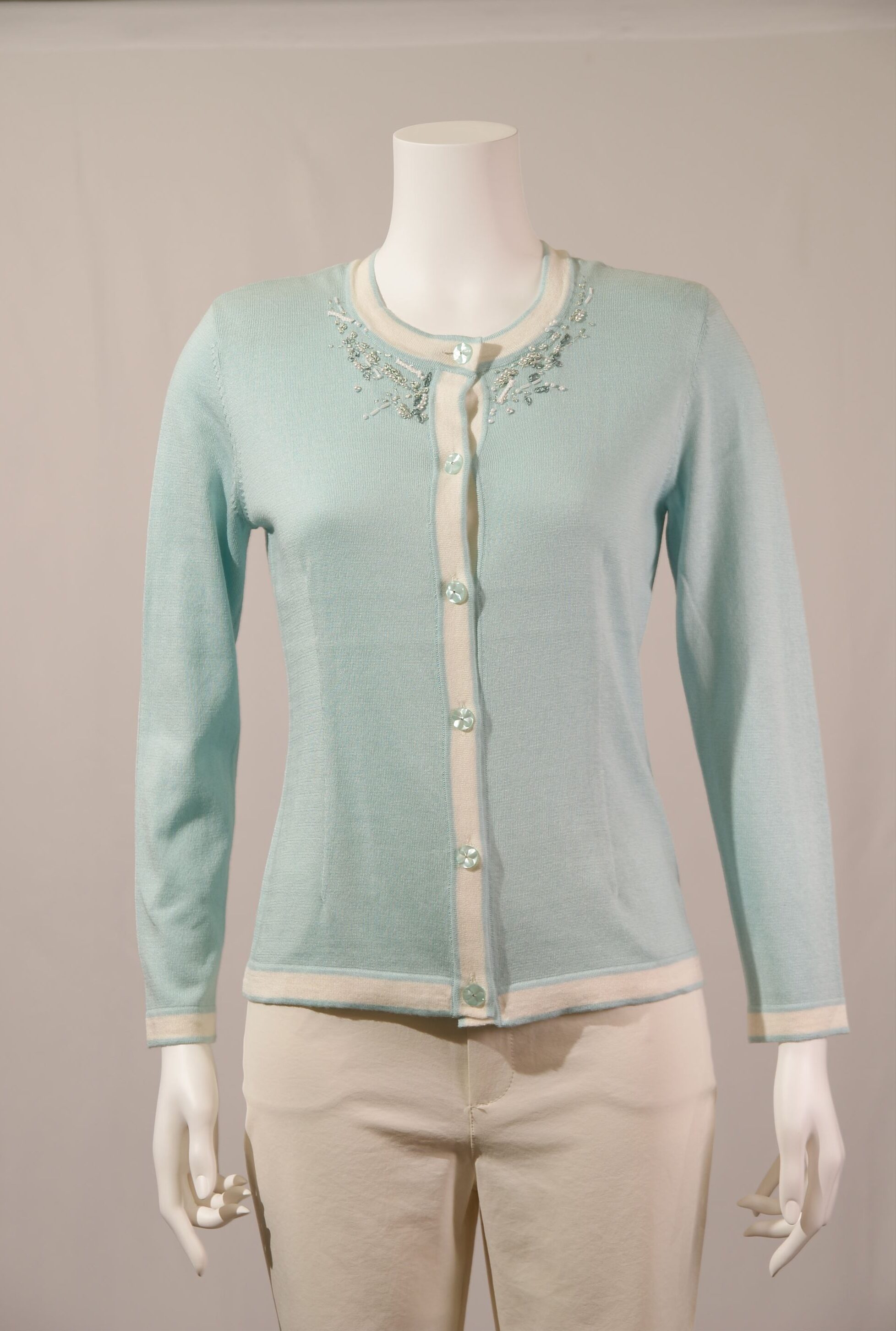 シルク綿天竺 丸首配色カーディガン×衿ビーズ刺繍(#110240とアンサンブル可能)
