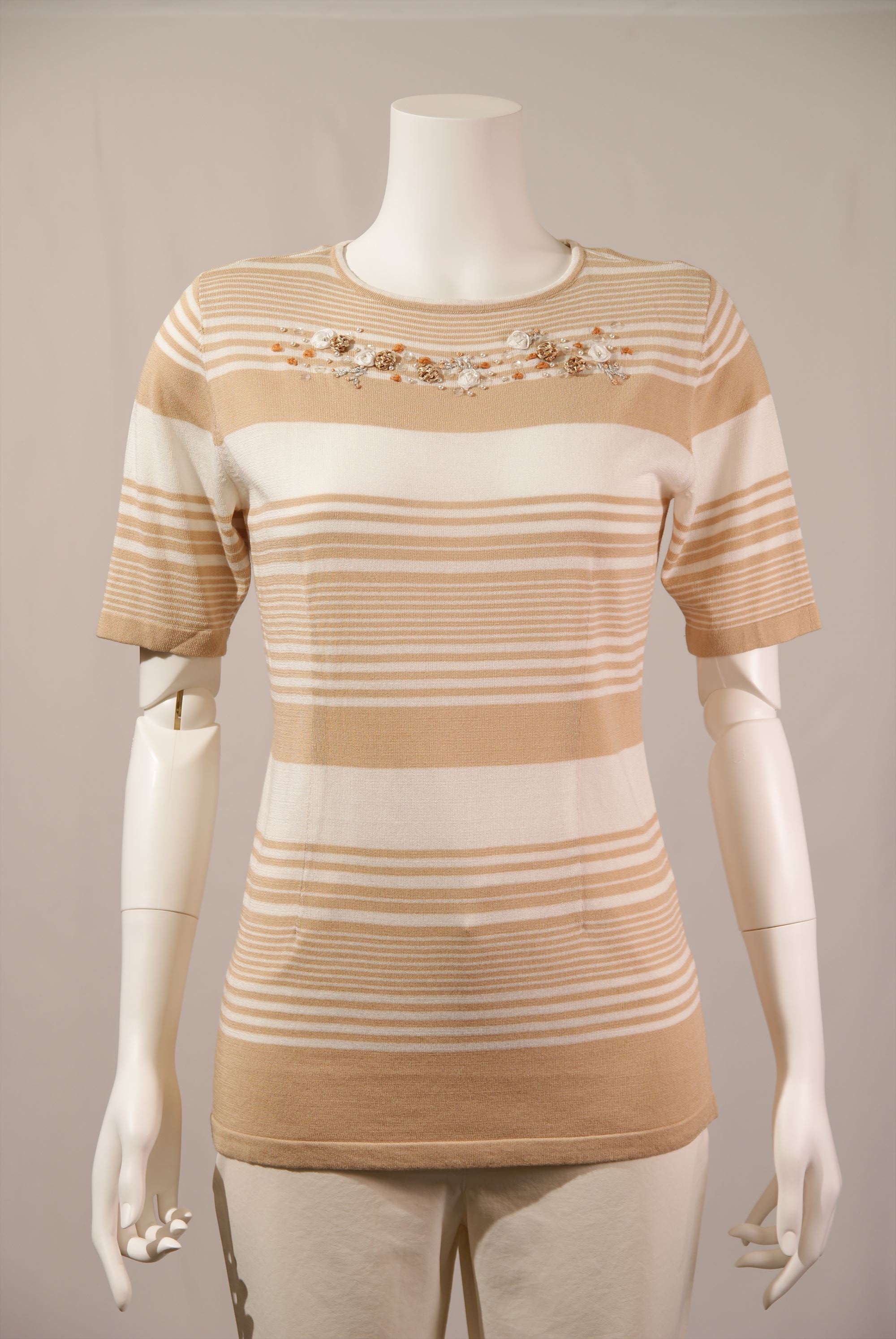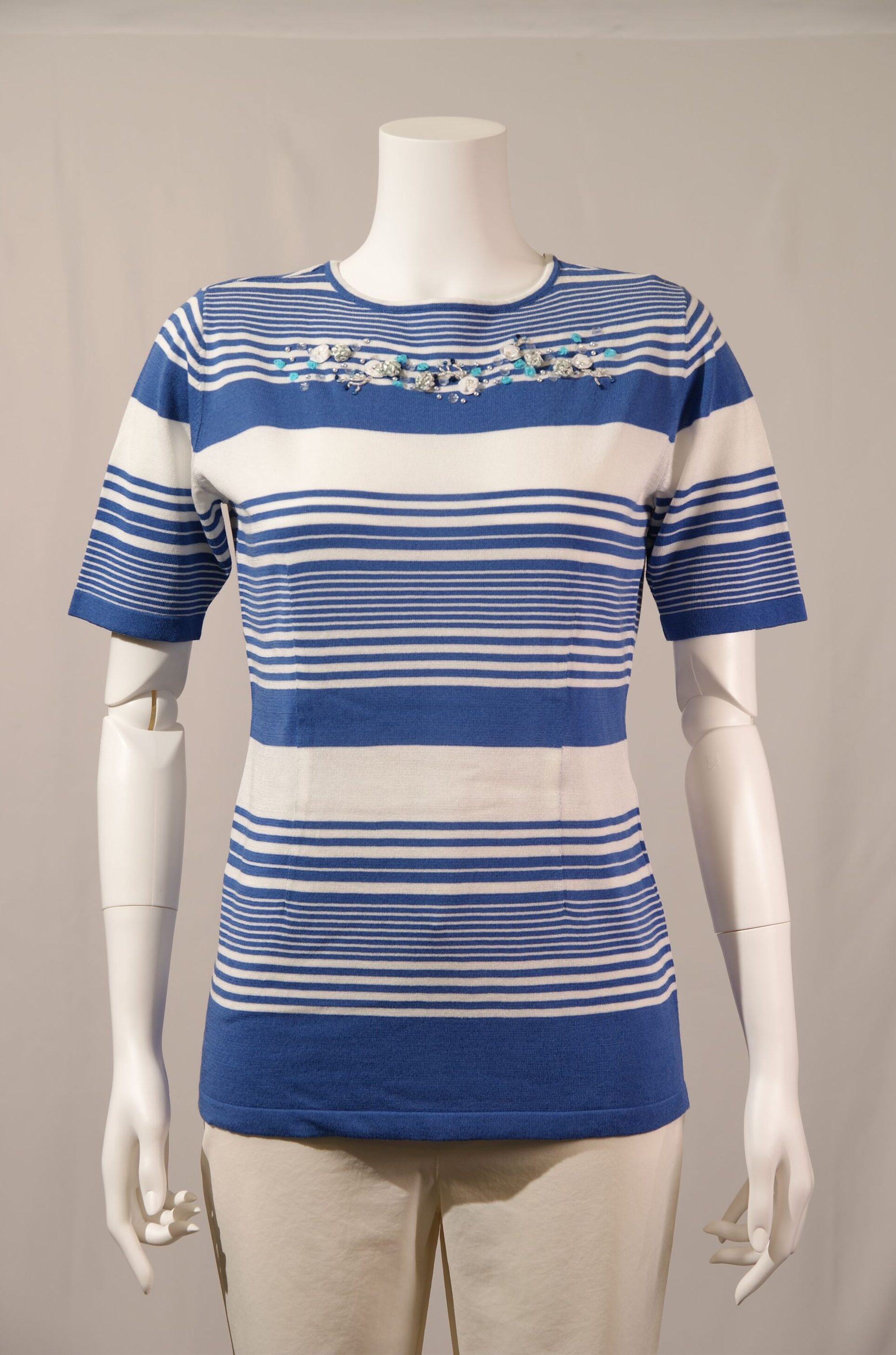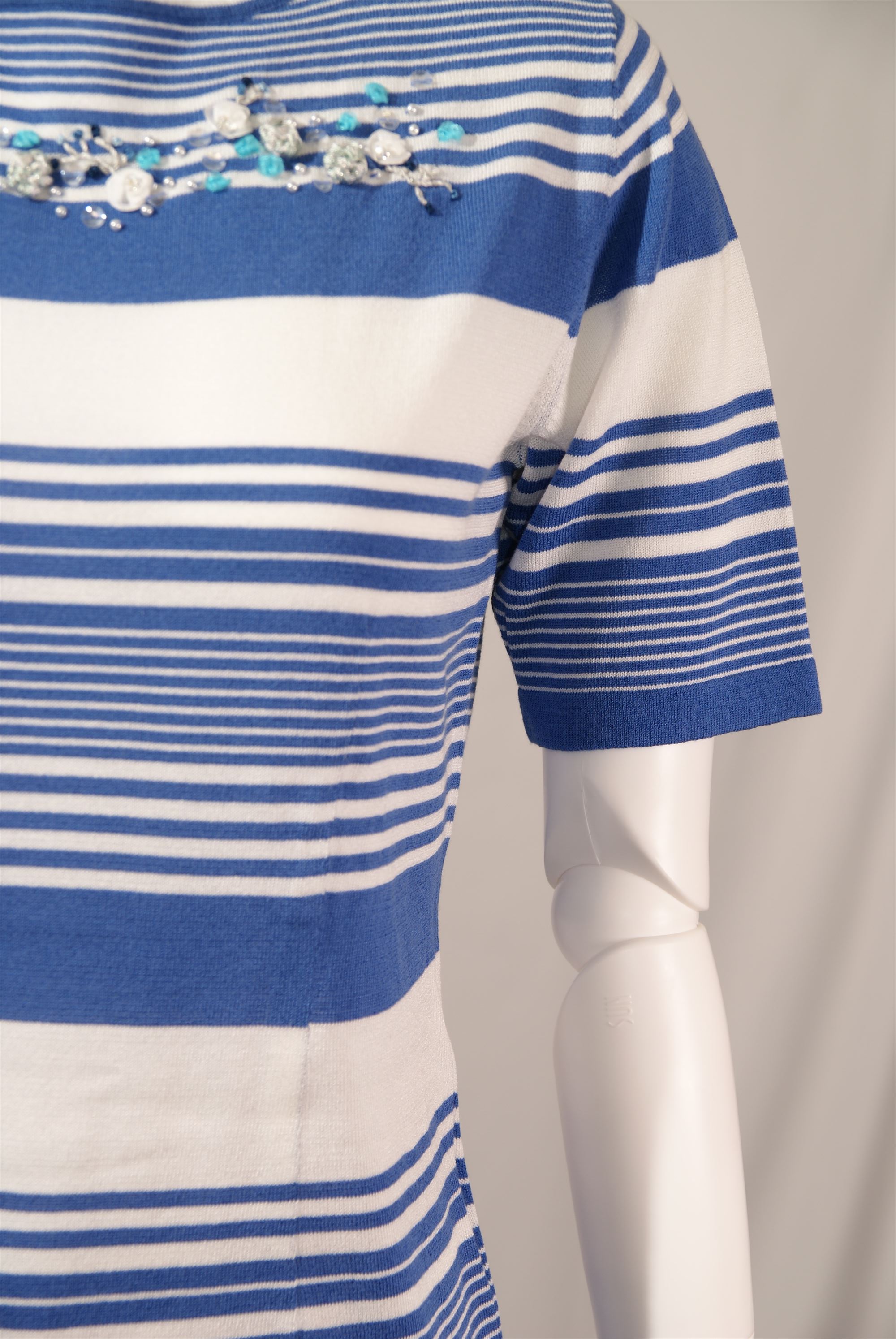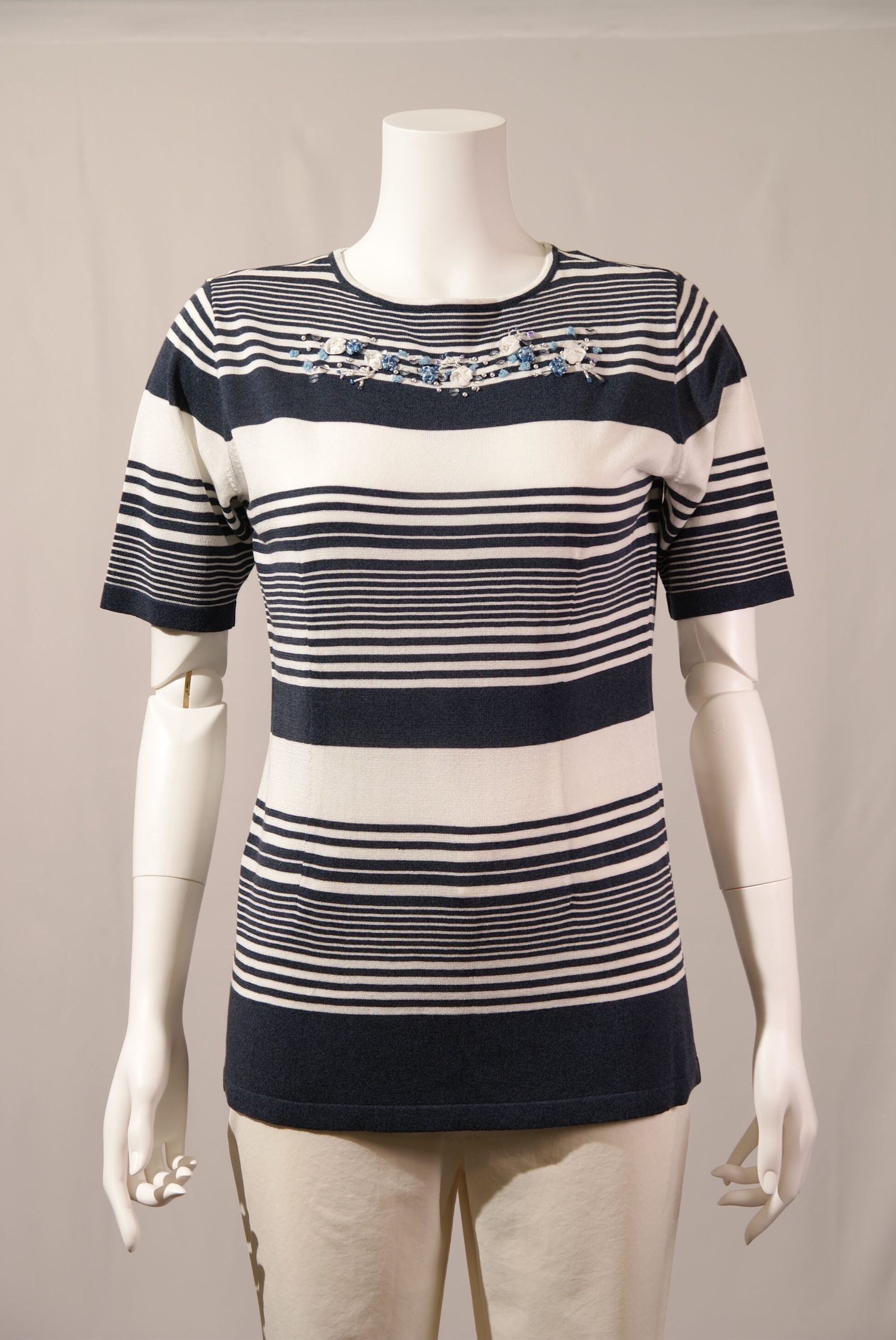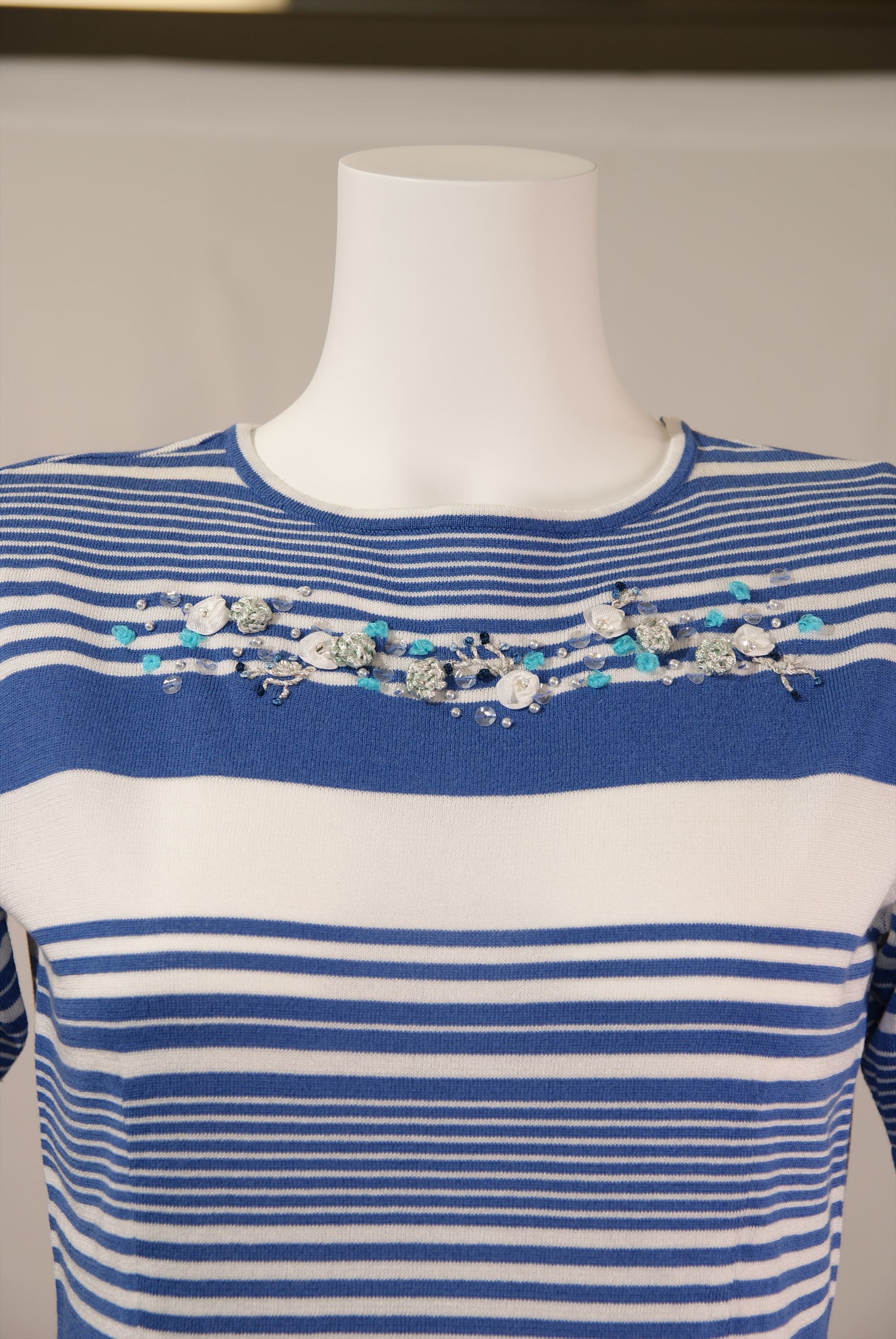 レーヨン綿天竺ボーダー柄 ボートネックプルオーバー×配色刺繍(#110443とアンサンブル可能)