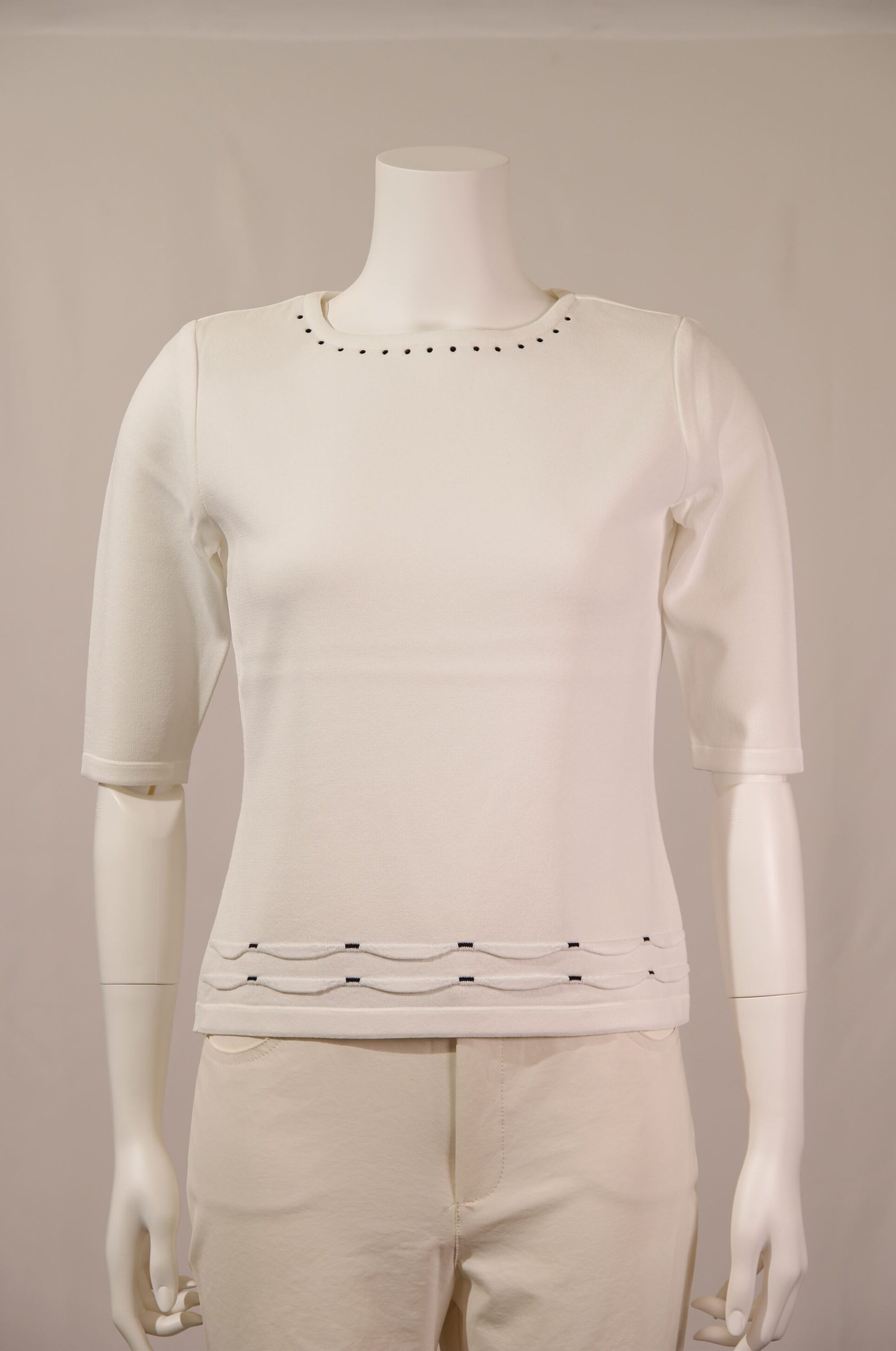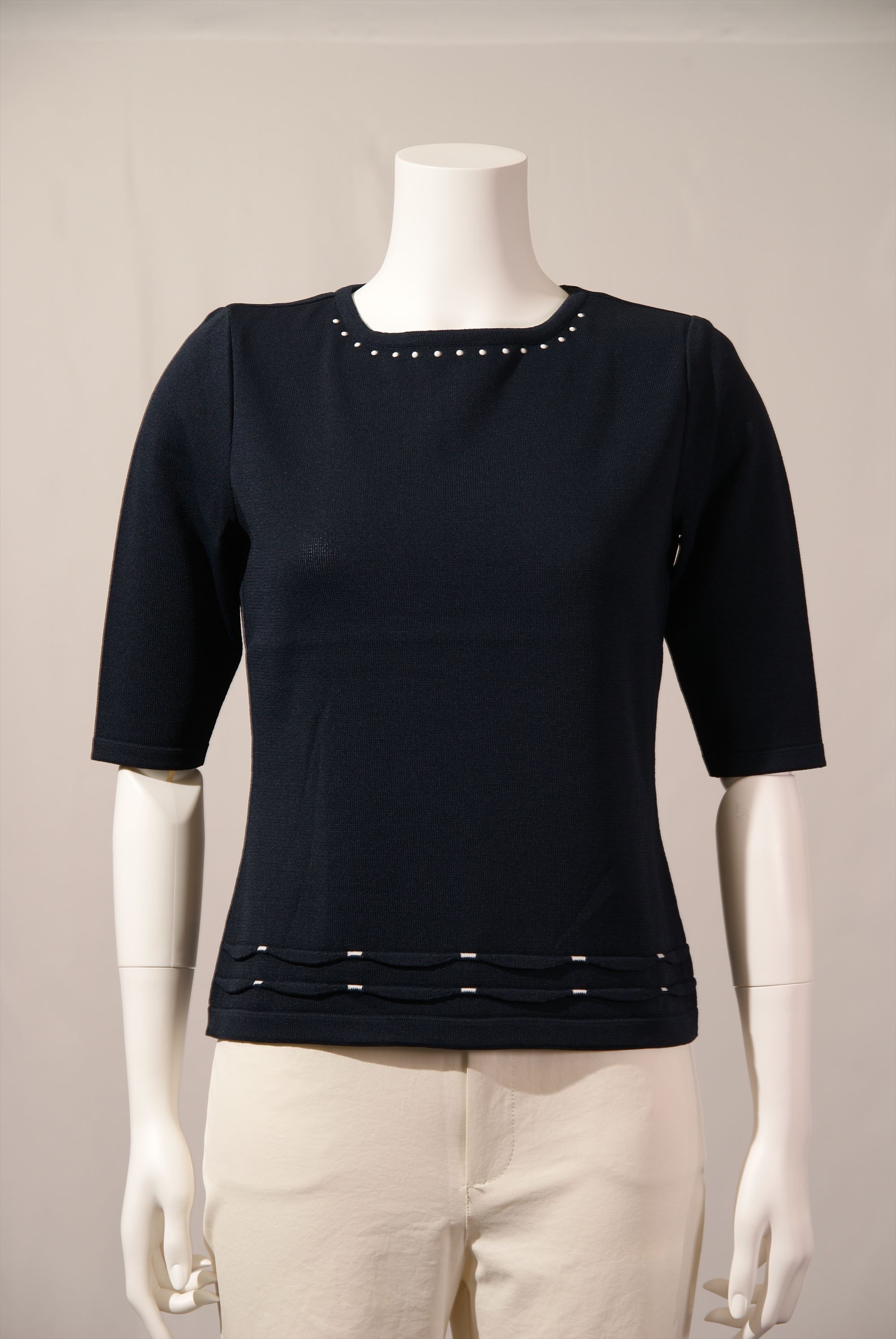 アセテート,ナイロン裾タック柄 ボートネックプルオーバー×スワロフスキー(#110450とアンサンブル可能)