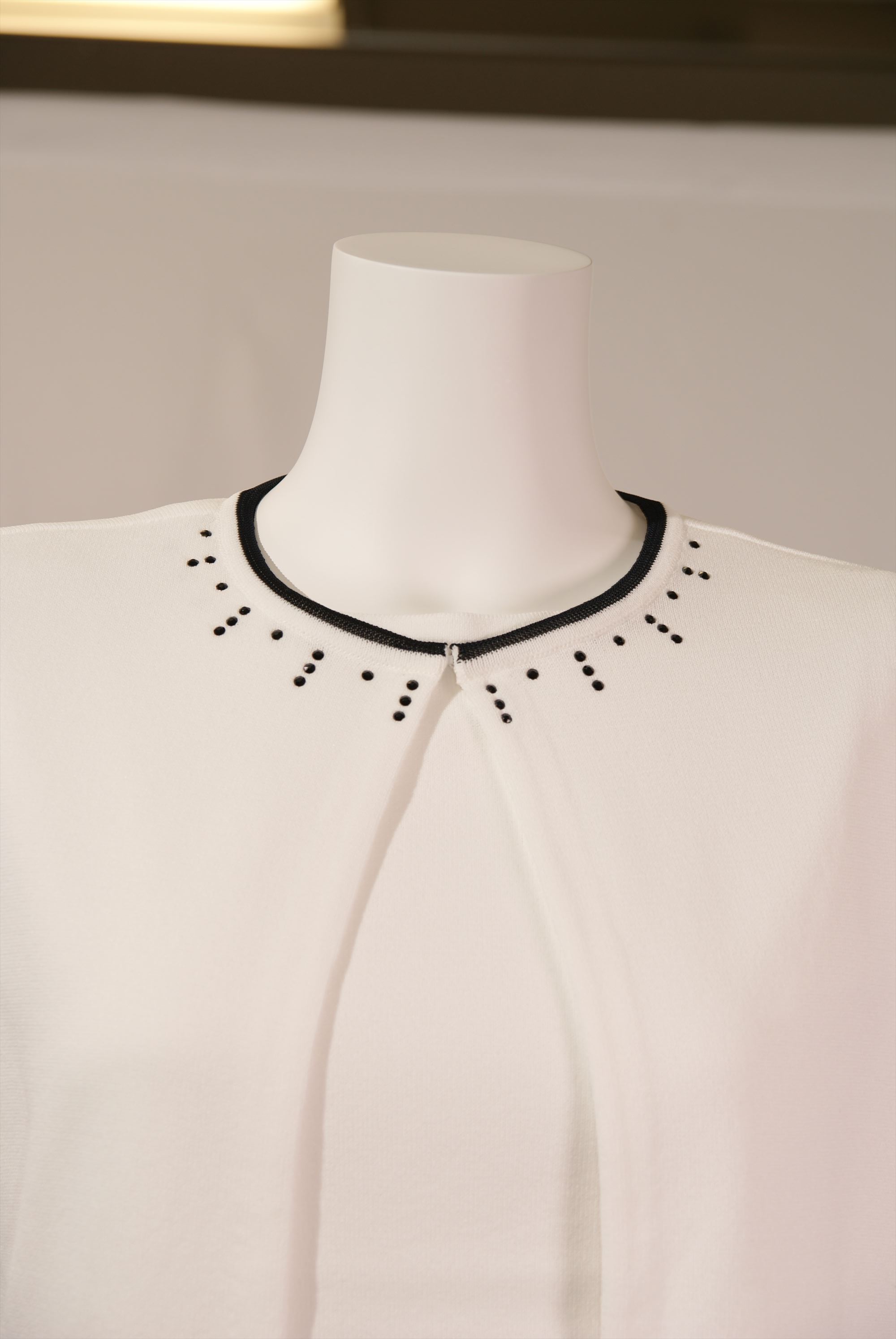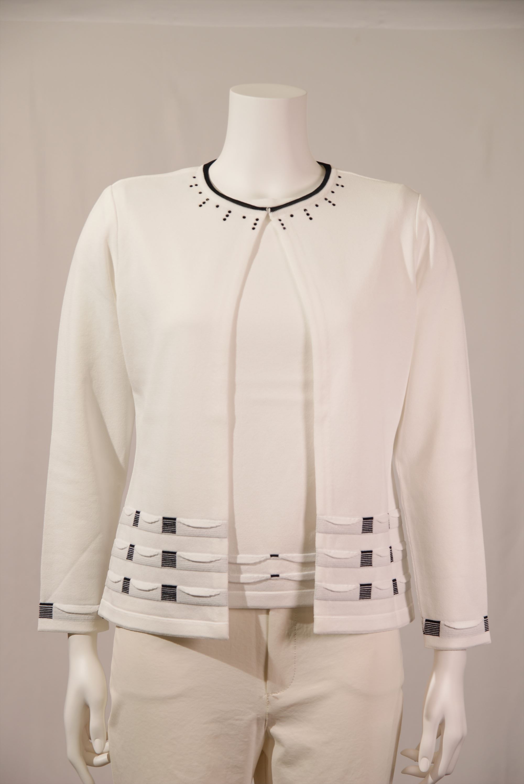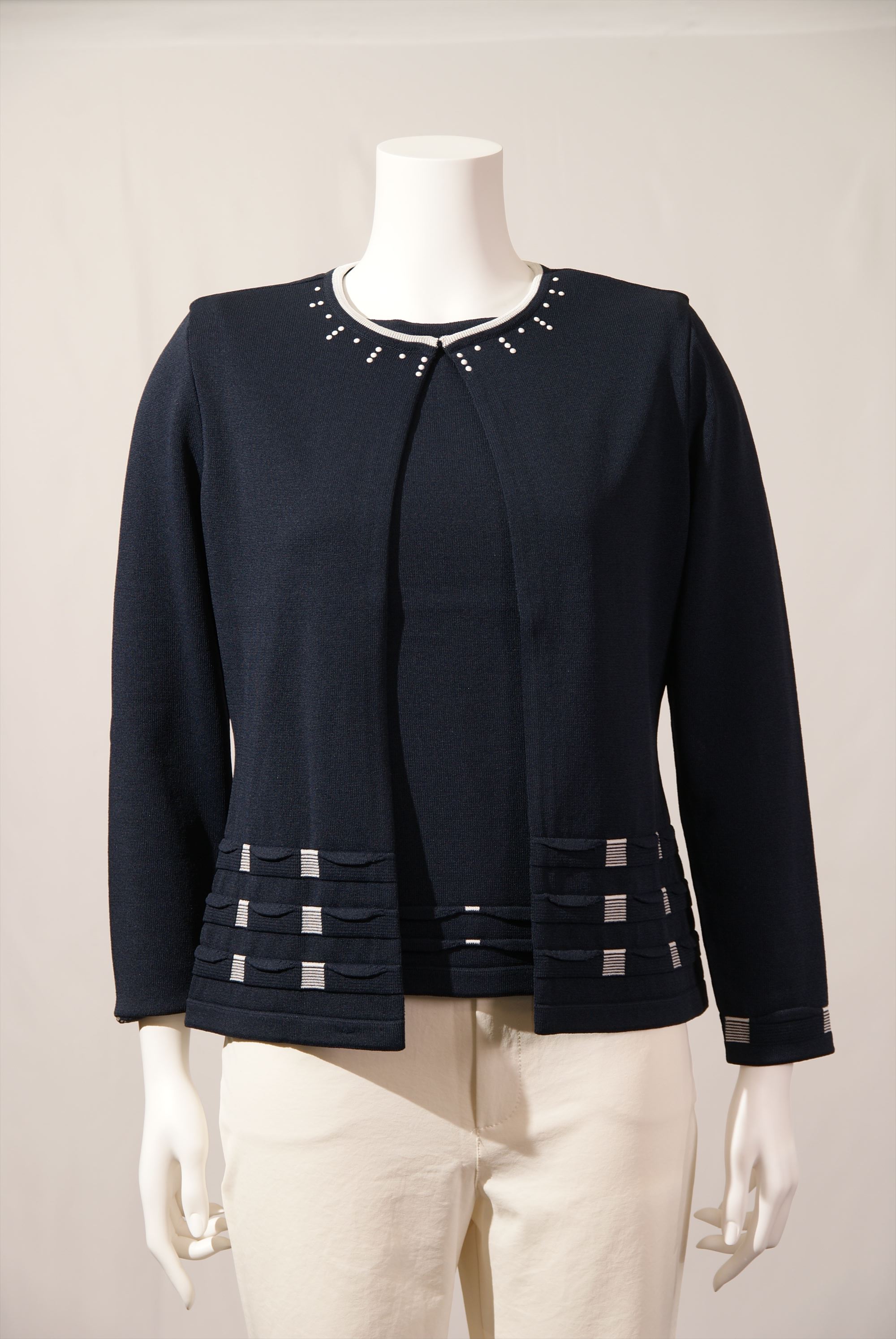アセテート,ナイロン裾タック柄 ボートネックカーディガン×スワロフスキー(#110249とアンサンブル可能)