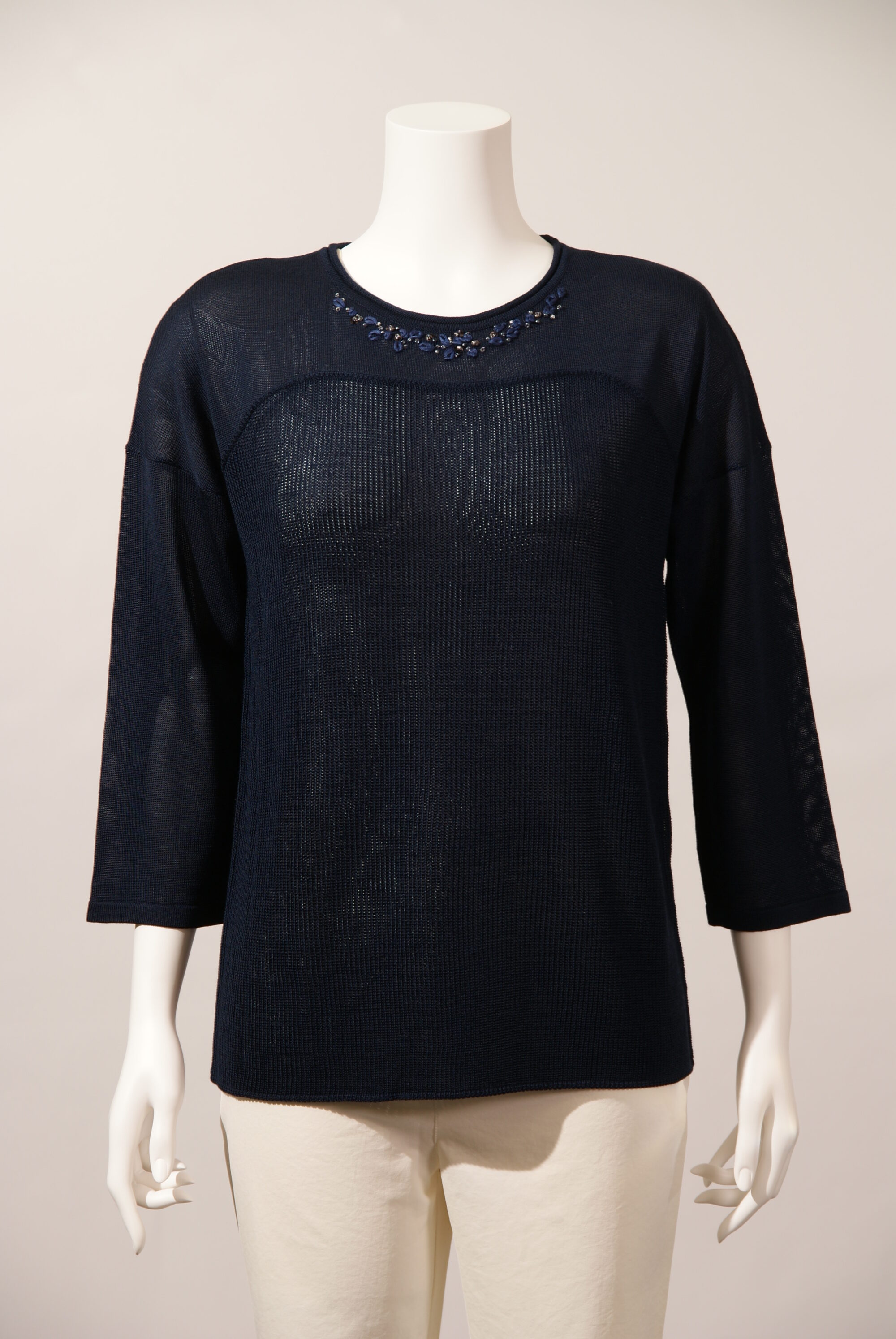 ボートネックプルオーバー×ビーズ刺繍