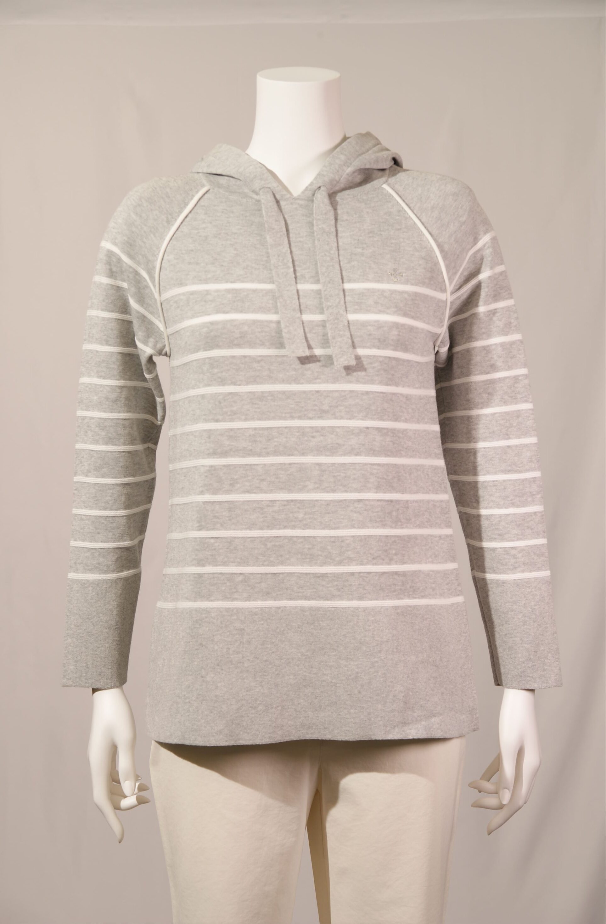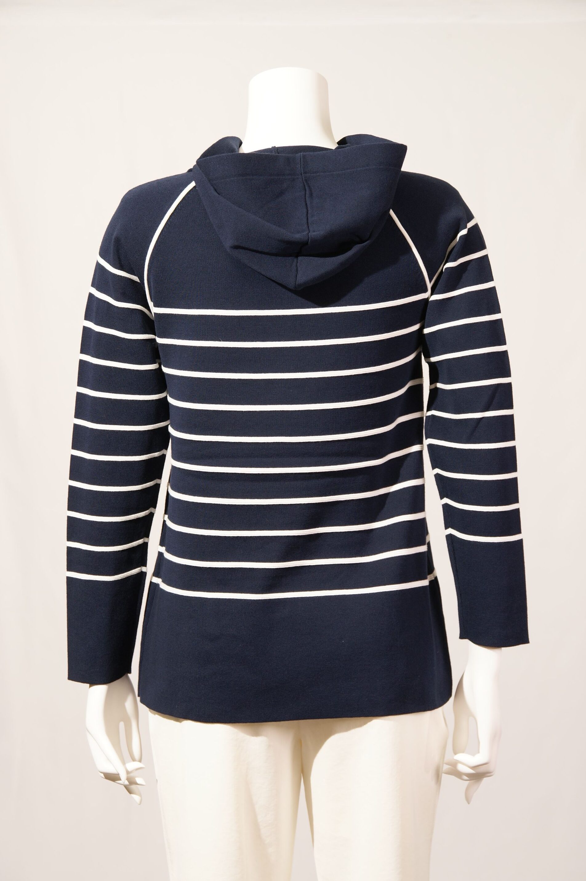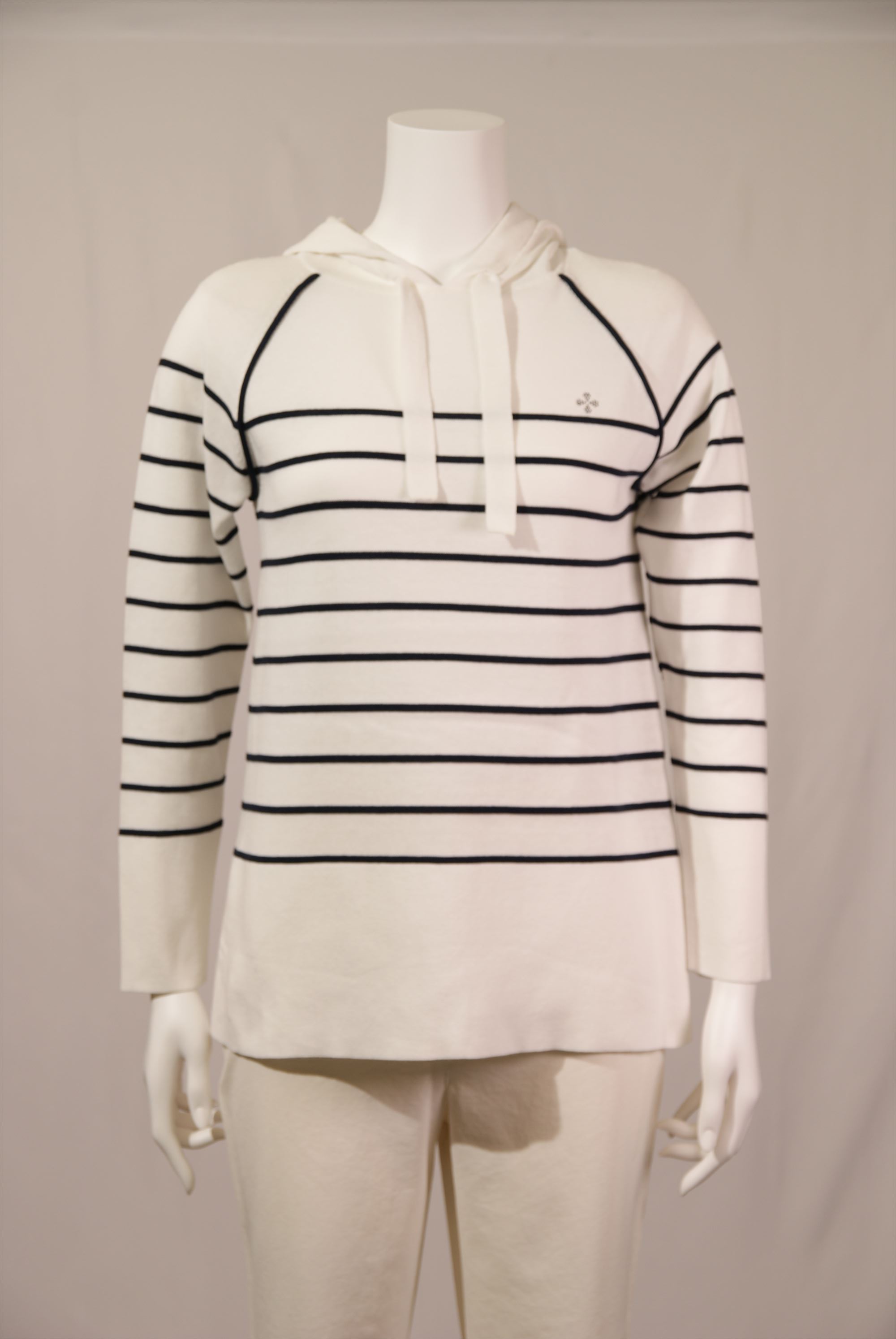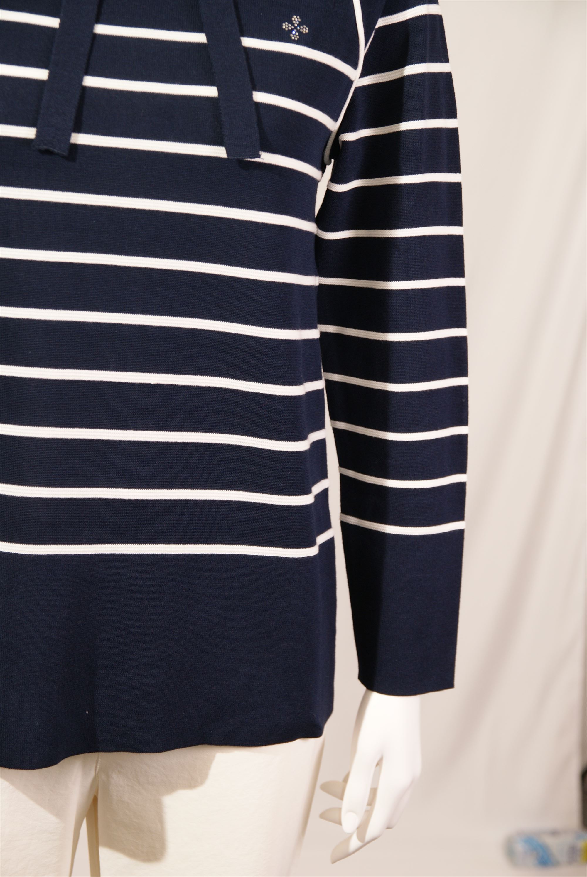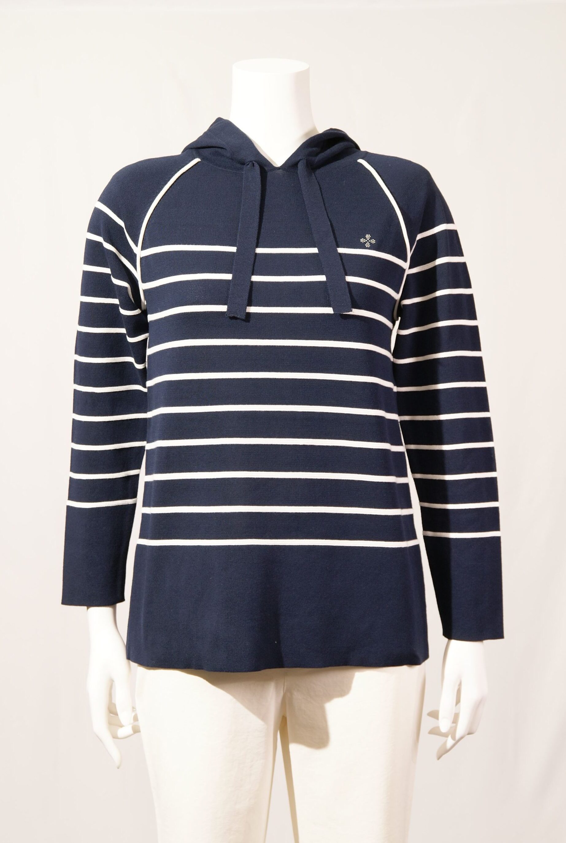 綿ボーダー柄 フード付きプルオーバー×スワロフスキー サガンマークワンポイント