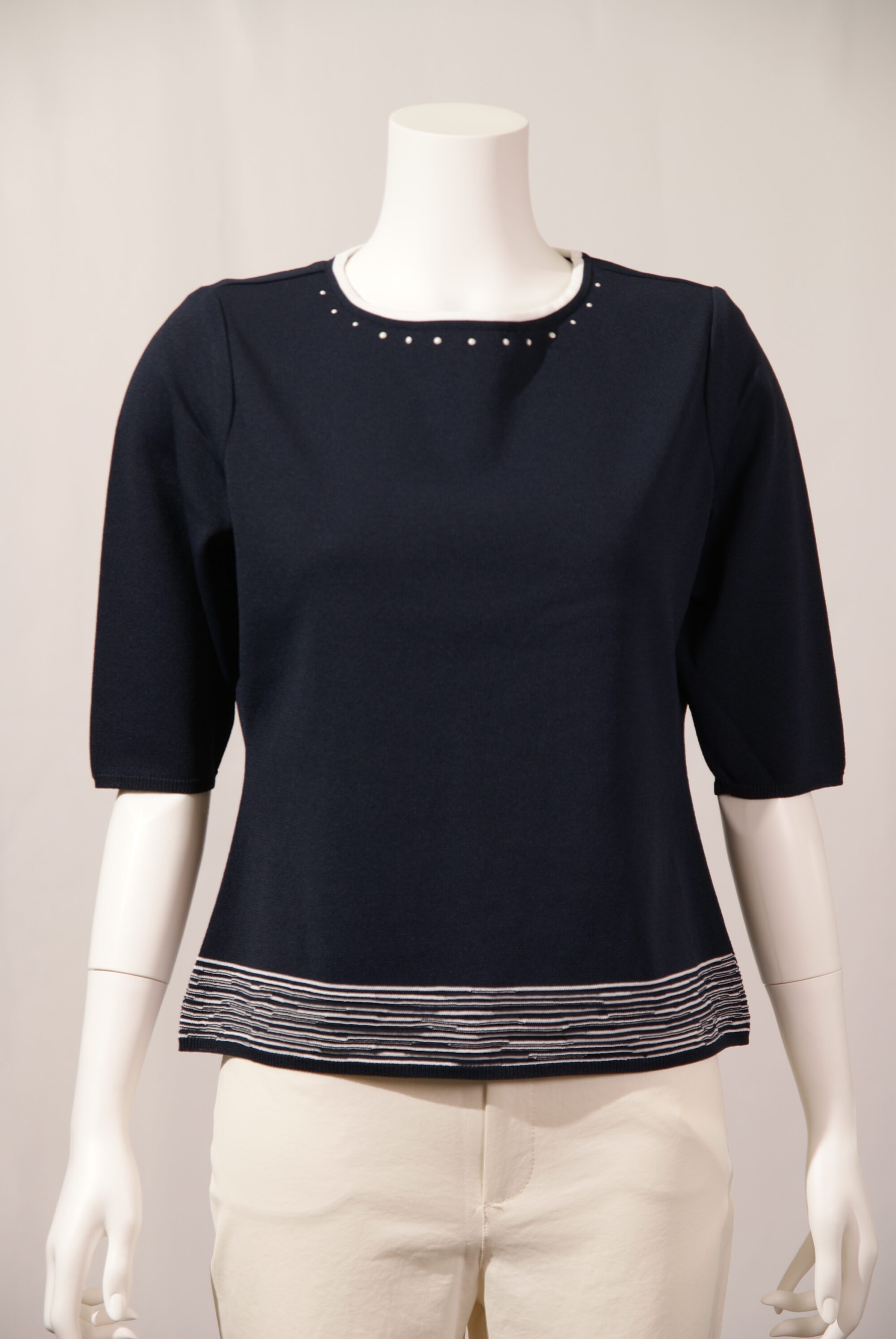 アセテートナイロン 配色入りニットプルオーバー ボートネック(#220432とアンサンブル可能)