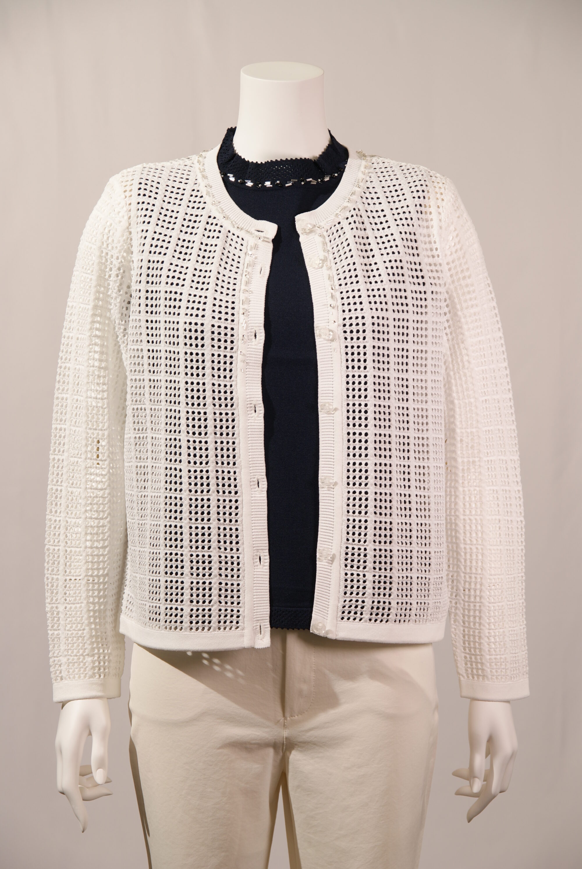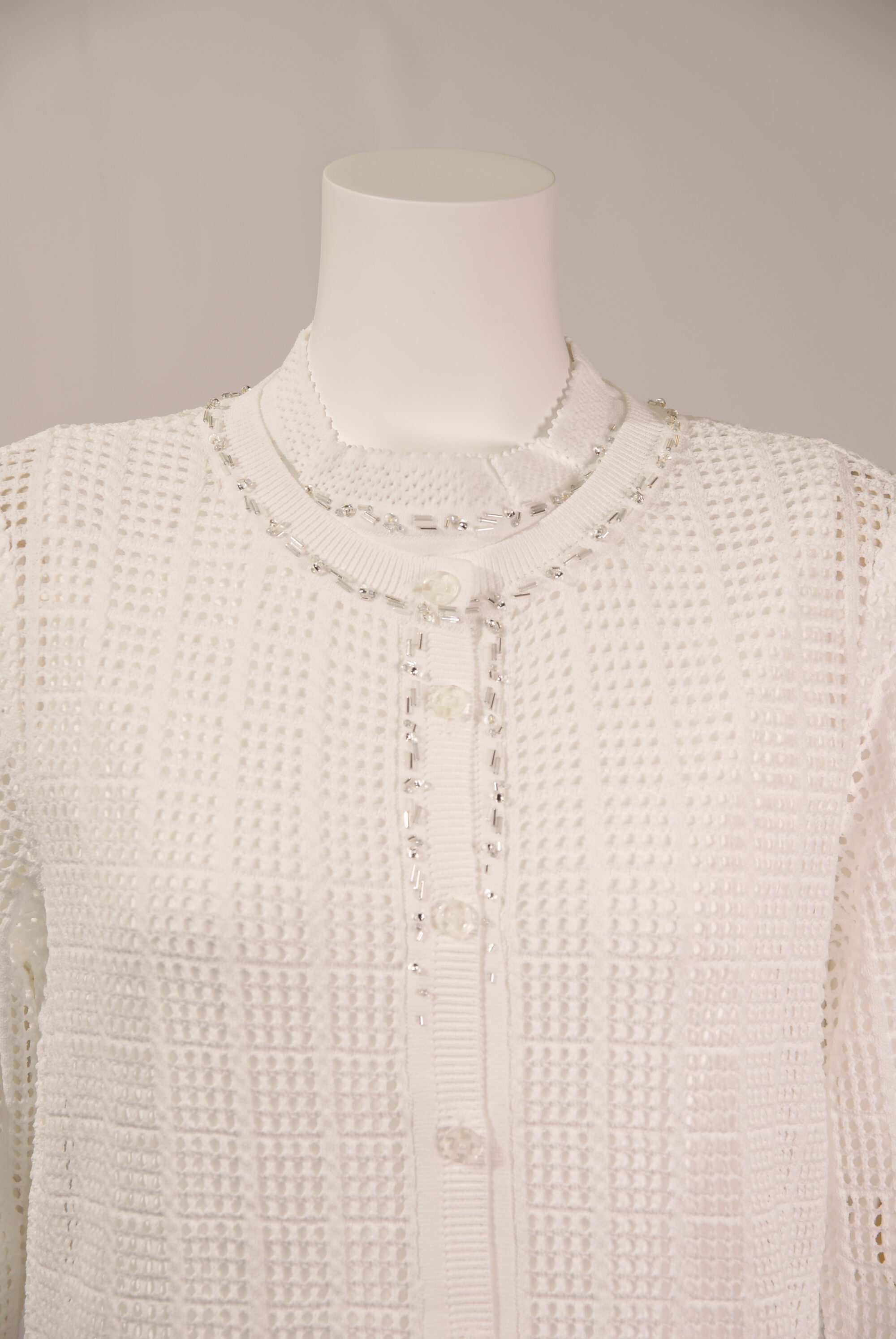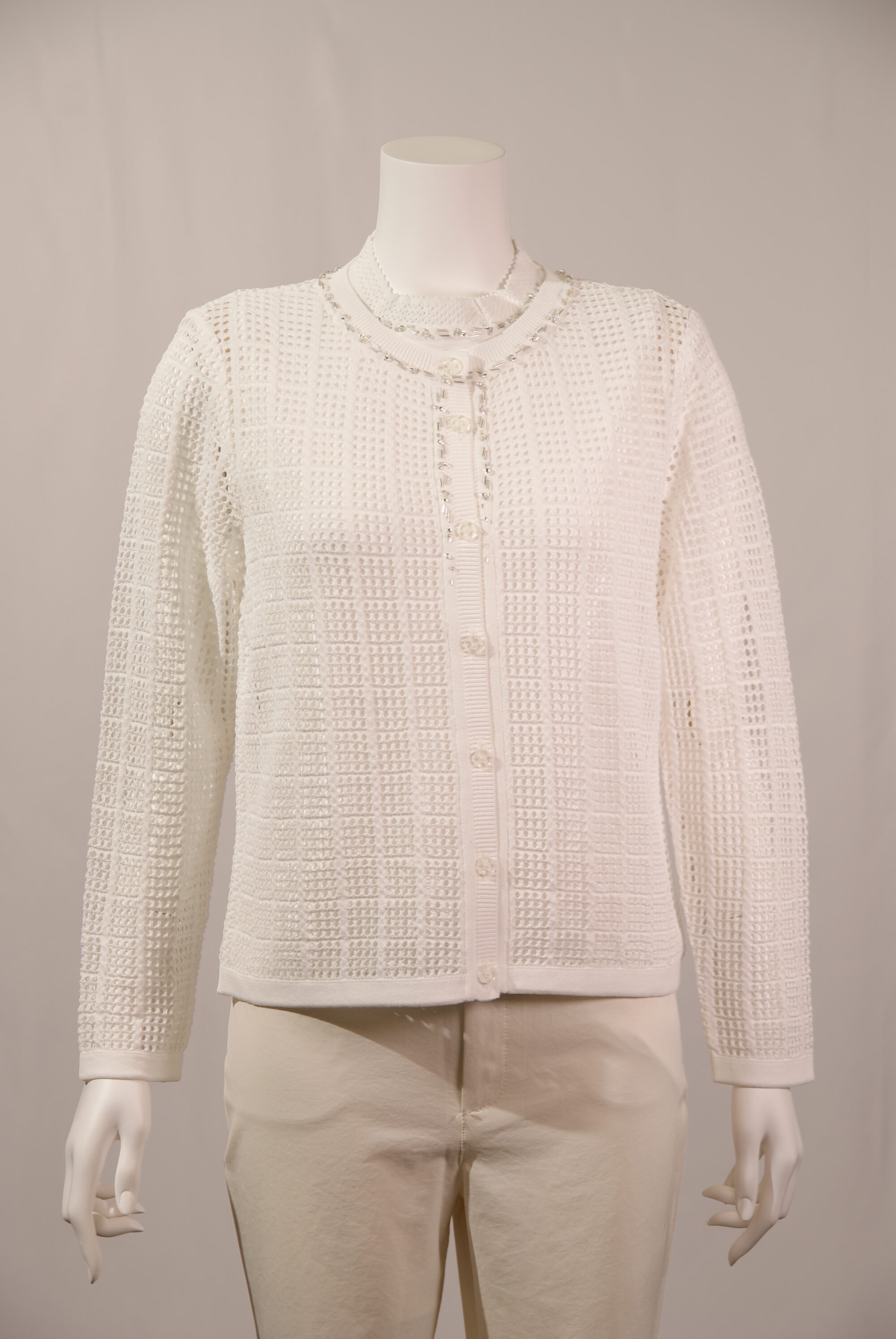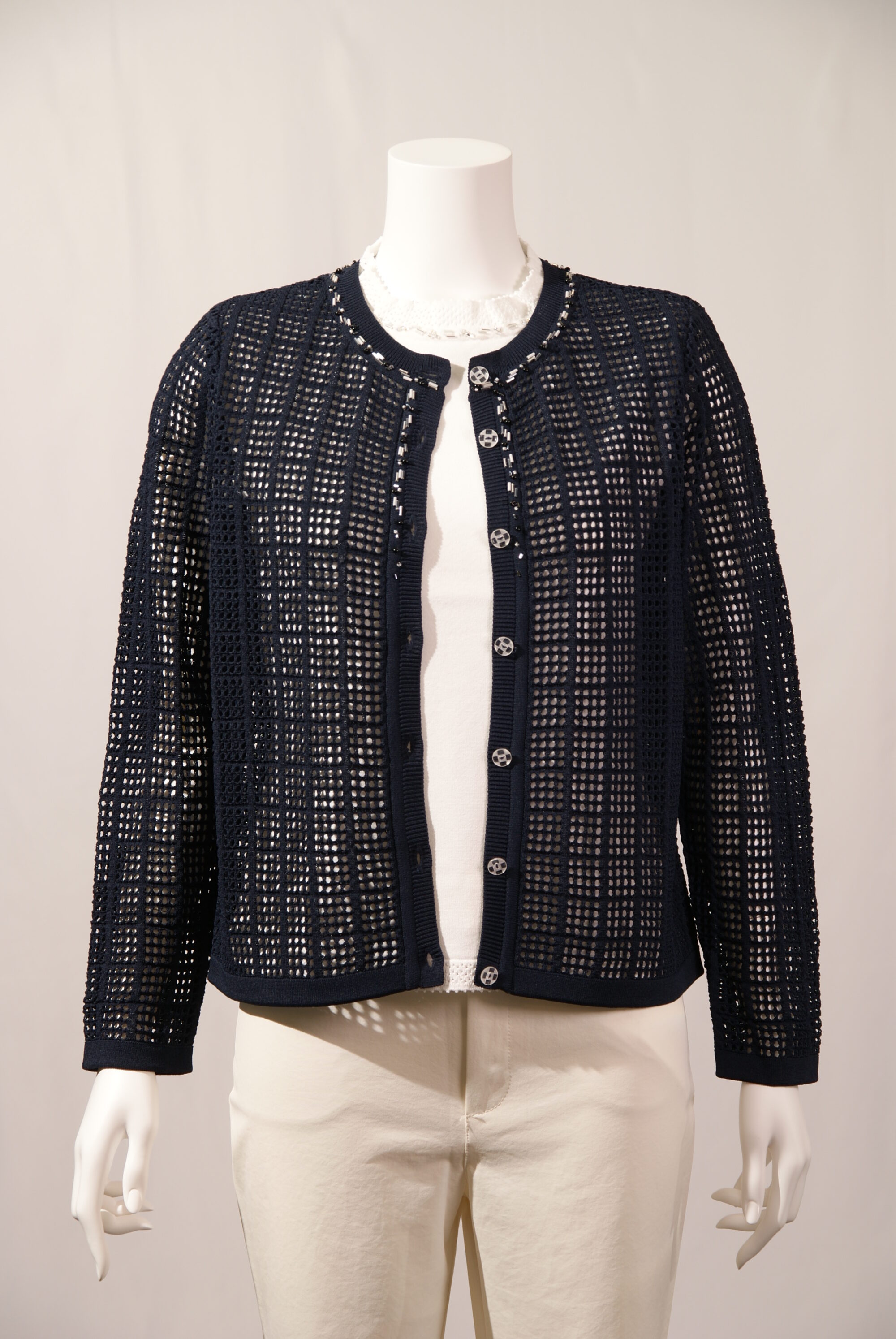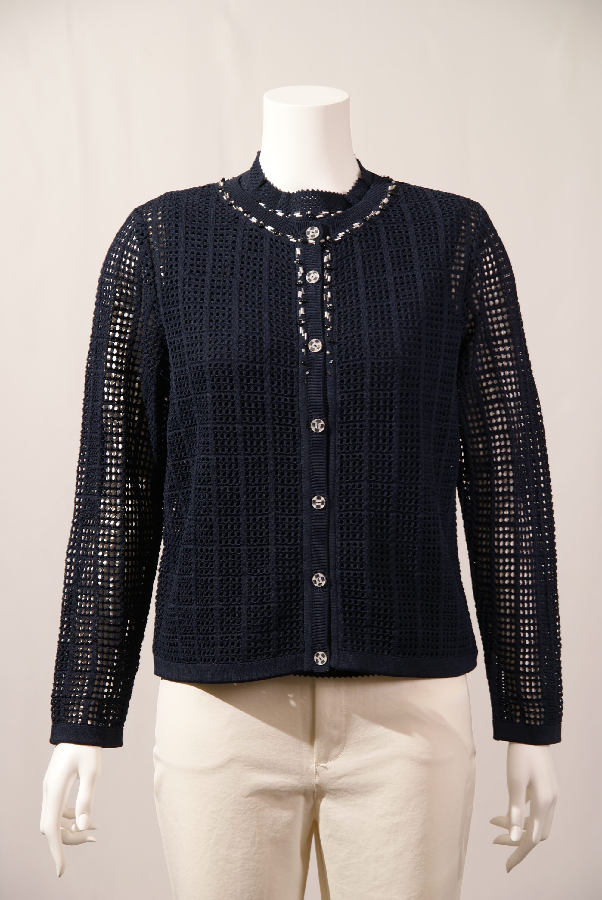 アセテートナイロン メッシュ 丸首ニットカーディガン ビーズ刺繍 (#220233とアンサンブル可能)